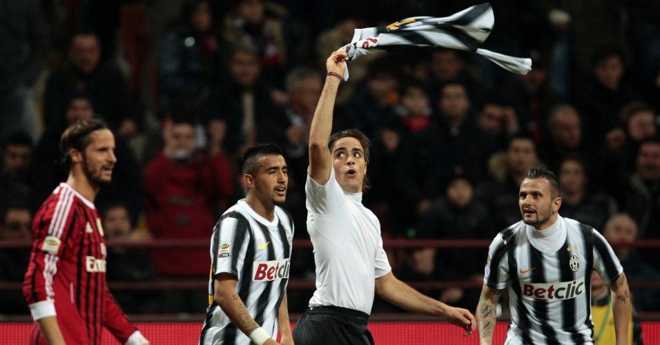 Com essa nova formação, a Juventus dominou o segundo tempo inteiro, atacando muito pelo lado direito, aproveitando-se da fragilidade defensiva de Luca Antonini, projeto de lateral esquerdo do Milan. Aos 69 minutos, agora pelo lado esquerdo, o empate juventino quase chegou em cruzamento de Chiellini, deslocado para a lateral , cruzou rasteiro e Abbiati, novamente, salvou a pátria milanista. Mas, aos 79 minutos, a arbitragem falhou bisonhamente uma outra vez, ao invalidar um gol de Matri, que recebeu o passe em posição regular, entre os defensores do Milan, e chutou para as redes. Não acho o termo “compensação” muito interessante ou mesmo válido, entretanto, foi o que ocorreu.